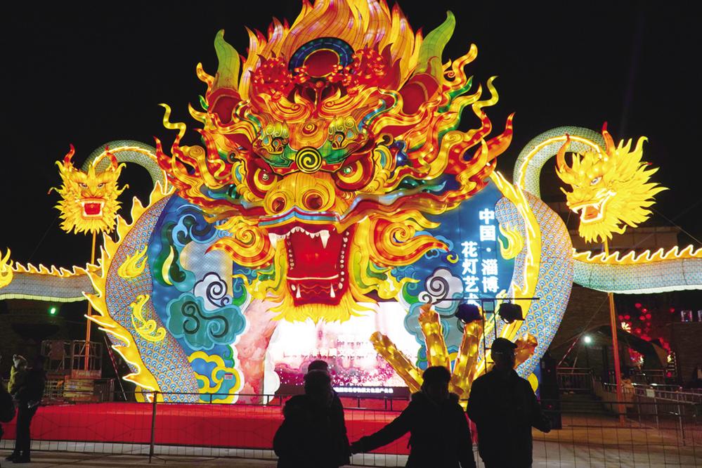 1月4日,人们在2024年淄博玉黛湖花灯会上赏灯游览。 近日,2024年淄博玉黛湖花灯会在山东省淄博市张店区玉黛湖公园拉开帷幕。此次花灯会以“穿越千年 点亮盛世”为主题,共布置大型花灯60余组,将持续举办至3月11日。 新华社记者 徐速绘 摄