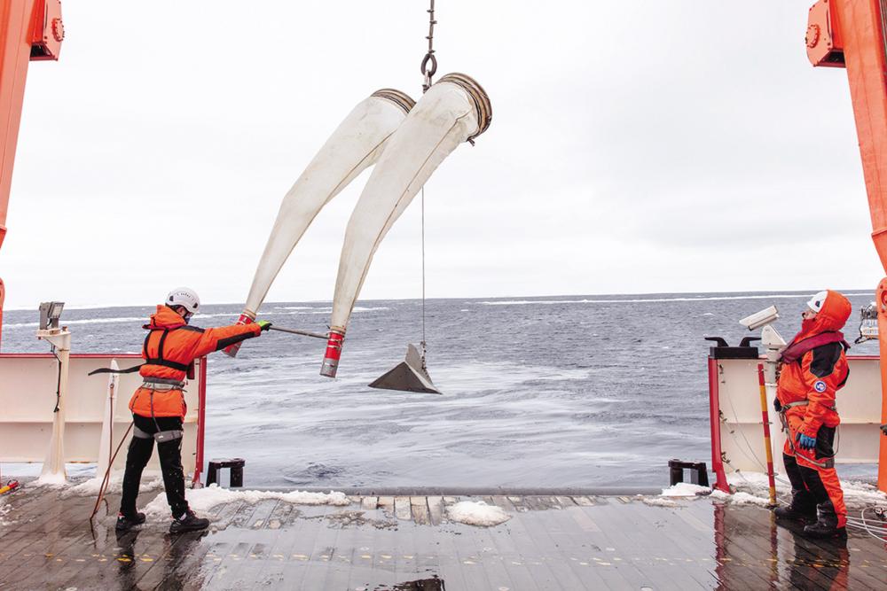 北京时间1月5日,在“雪龙2”号艉甲板,工作人员在下放拖网。 北京时间1月5日凌晨,在“雪龙2”号艉甲板,中国第40次南极考察队开始了抵达阿蒙森海后的首次考察作业。 新华社记者 周圆 摄