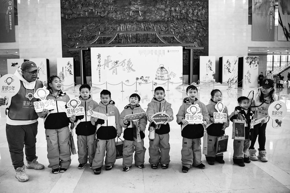 1月7日,“小沃柑”在辽宁省博物馆合影。 当日,8名来自广西的小朋友——“小沃柑”在沈阳老北市景区、辽宁省博物馆等地游览,感受这座城市的独特魅力。 新华社记者 龙雷 摄