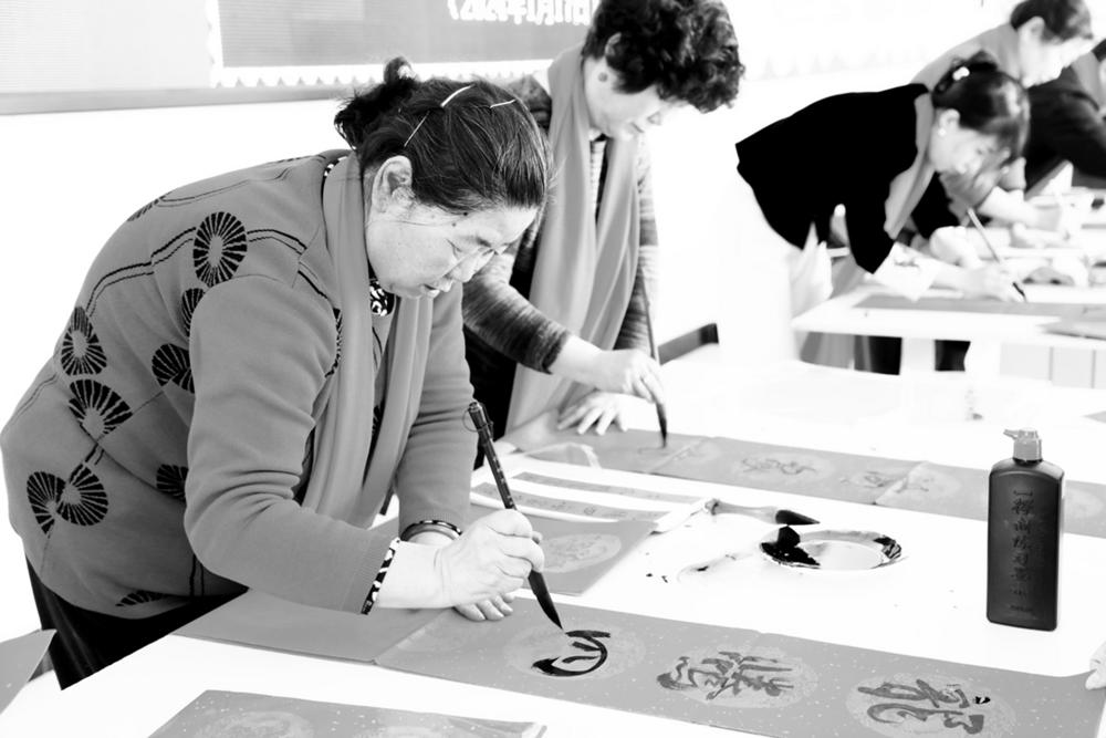 挥毫泼墨送祝福。记者 李淑娟 摄