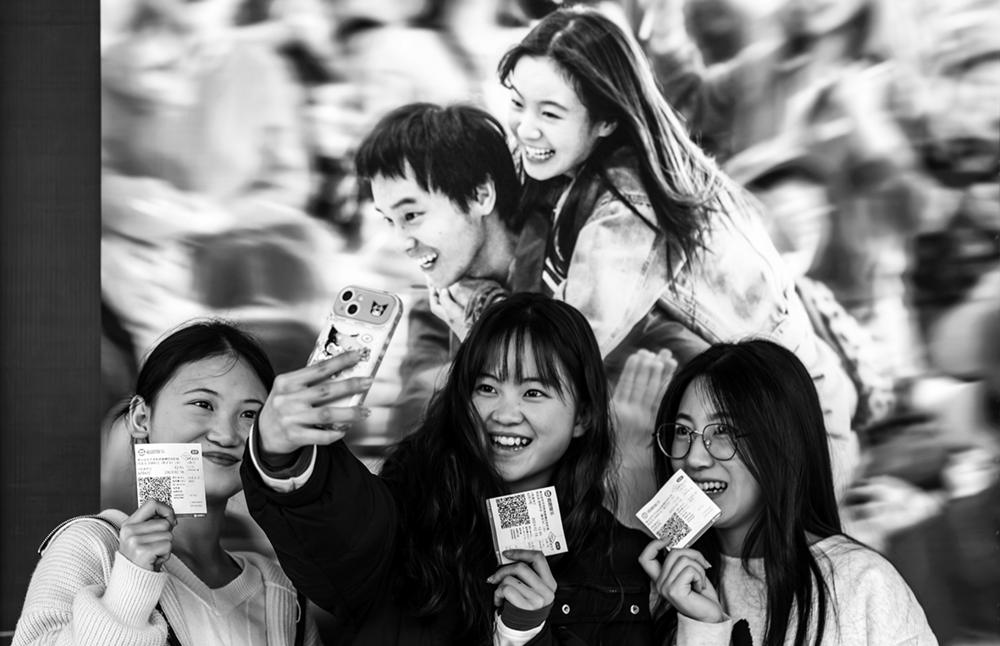 2月18日,观众在贵州省黔西市横店电影城电影海报前留影。 国家电影局2月18日发布数据,我国2024年春节档电影票房达80.16亿元,创造了新的春节档票房纪录,观影人次为1.63亿。新华社发(范晖 摄)