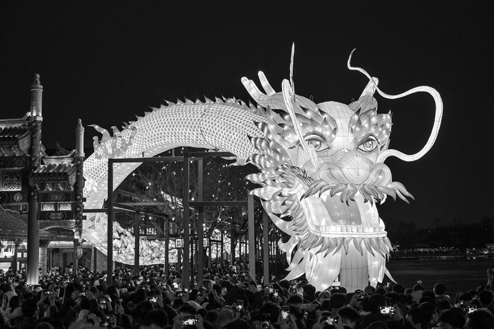 2月24日在北京市西城区什刹海荷花市场拍摄的巨型龙灯“蛟龙出海”。 当日是元宵佳节,各地群众举办多样活动迎接佳节的到来。 新华社记者 李鑫 摄