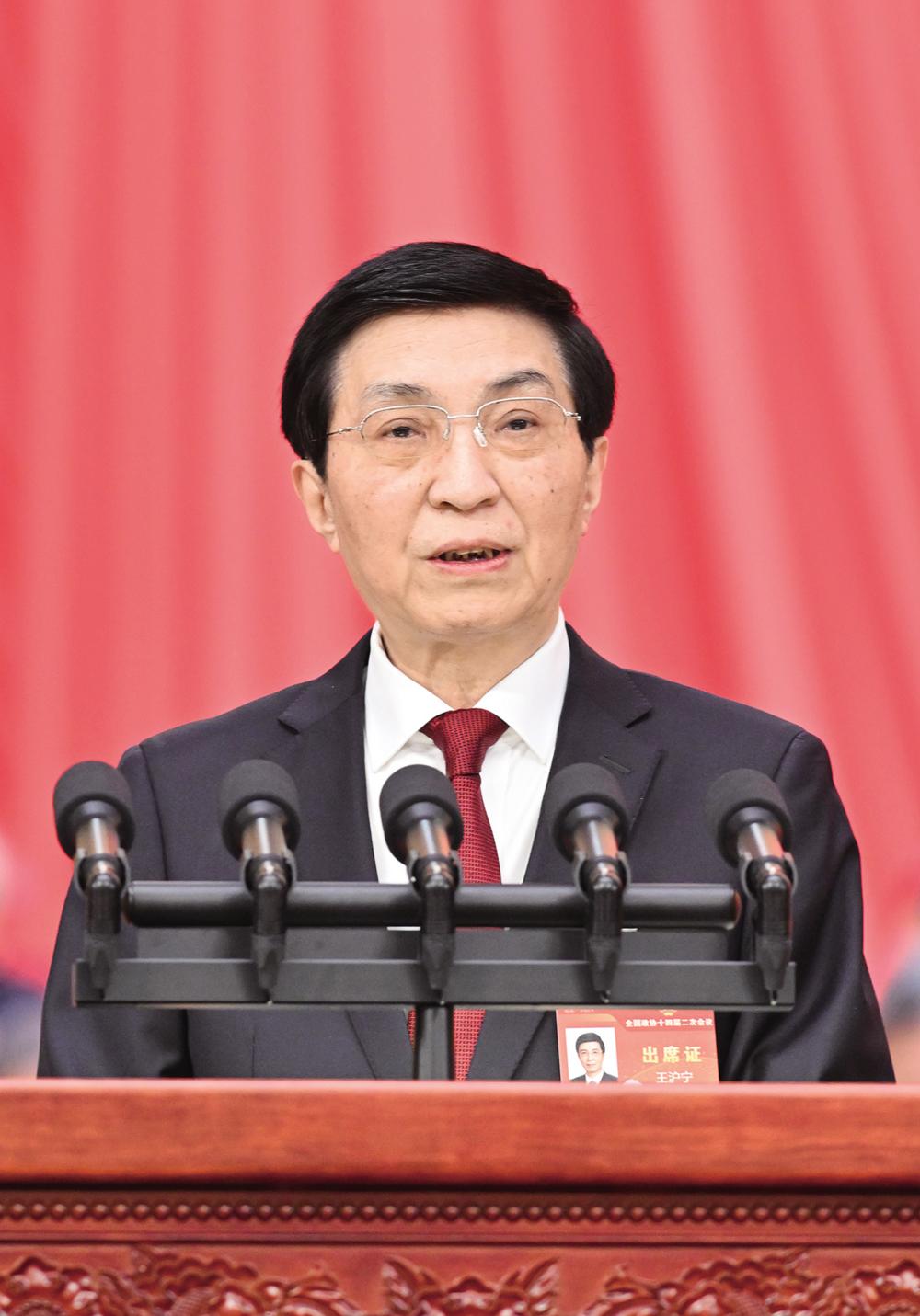 王沪宁代表政协第十四届全国委员会常务委员会,向大会报告工作。