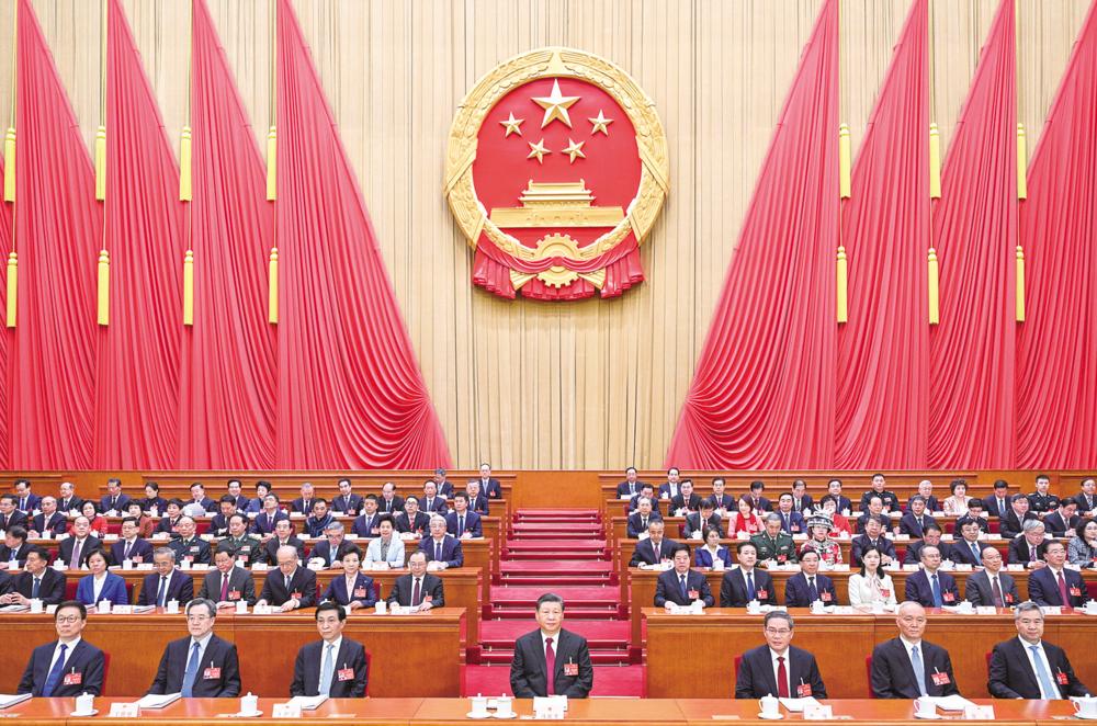 3月5日,第十四届全国人民代表大会第二次会议在北京人民大会堂开幕。党和国家领导人习近平、李强、王沪宁、蔡奇、丁薛祥、李希、韩正等出席大会。 新华社记者 李学仁 摄
