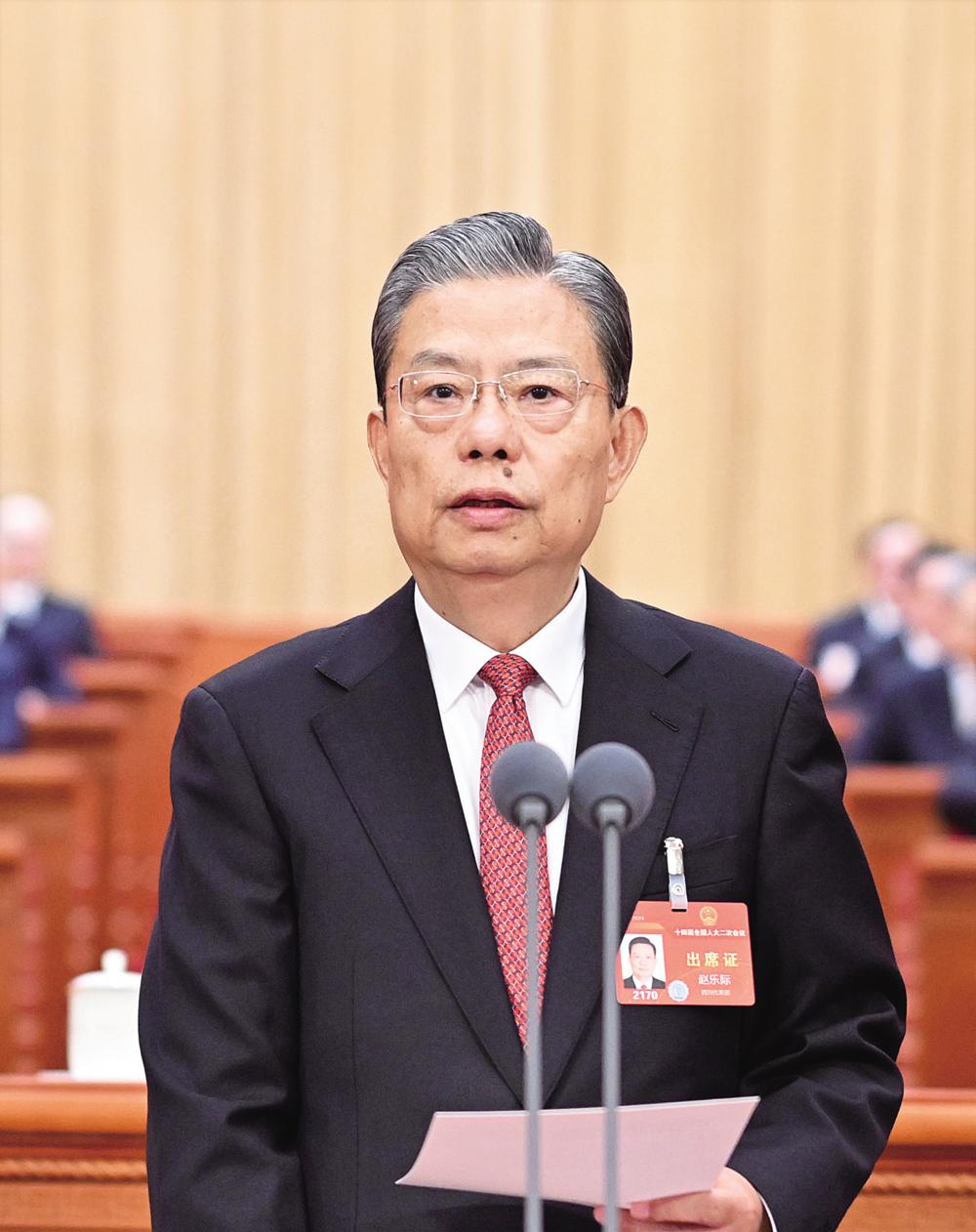 大会主席团常务主席、执行主席赵乐际主持大会。大会主席团常务主席、执行主席李鸿忠、王东明、肖捷、郑建邦、丁仲礼、郝明金、蔡达峰、何维、武维华、铁凝、彭清华、张庆伟、洛桑江村、雪克来提·扎克尔、刘奇在主席台执行主席席就座。