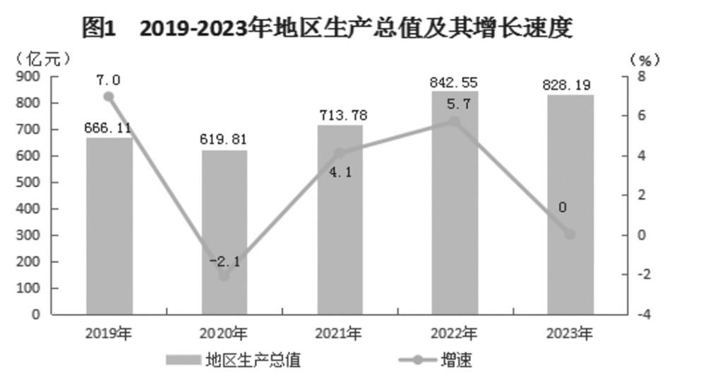 根据地区生产总值统一核算结果,全年生产总值[2]828.19亿元,按可比价格计算总量与上年持平。分产业看,第一产业增加值51.92亿元,同比增长5%;第二产业增加值545.65亿元,同比下降5.1%;第三产业增加值230.62亿元,同比增长10.6%。三次产业比重为6.3:65.9:27.8。
