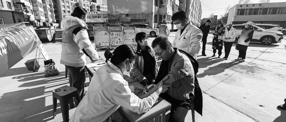 3月8日,州人民医院和州疾控中心联合朝阳社区居委会在德令哈市德农小区开展义诊活动。 活动现场,医护人员为前来咨询的市民免费提供医疗服务,同时给市民普及常见疾病的预防保健知识,并发放宣传手册。 本报记者 张萍 摄影报道