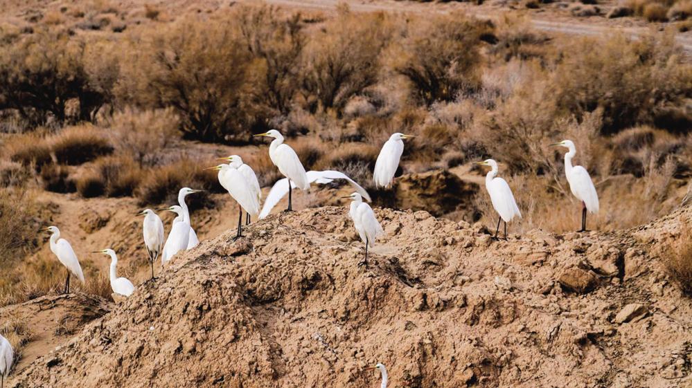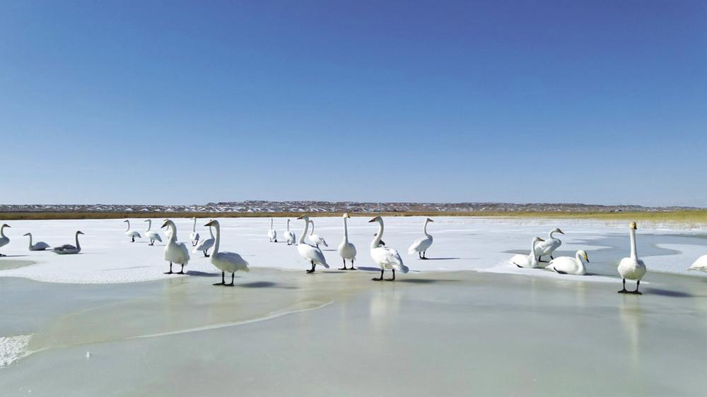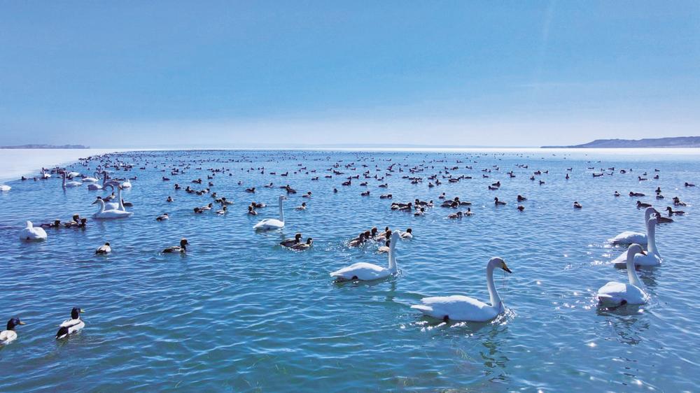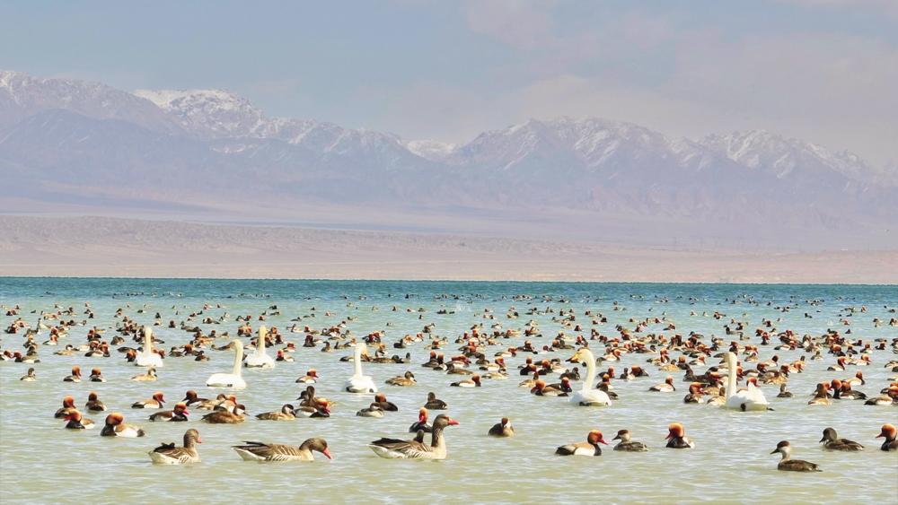 近日,记者来到德令哈市可鲁克湖,站在湖边极目远望,水天一色,清澈的水面上波光粼粼,湖底长满水草,随波摇曳,成群的水鸟或栖息在芦苇丛中,或在水面翻飞觅食。每年初春,湖水融化,成群的白鹭、斑头雁、野鸭等珍禽飞到这里,在沼泽和芦苇中筑巢栖居。据了解,该地记录鸟类19目47科149种,其中国家Ⅰ级重点保护鸟类8种,国家Ⅱ级重点保护鸟类15种。