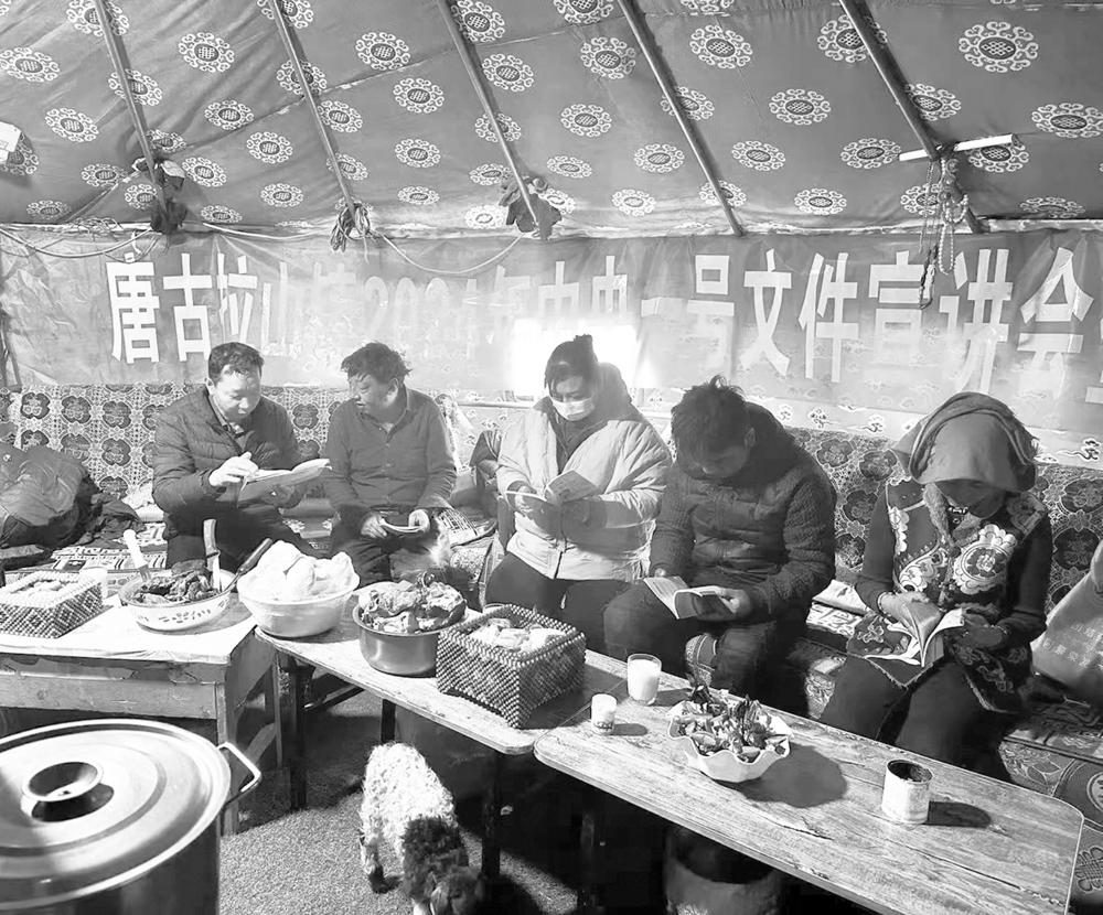 牧区“送”学,让宣讲有广度。宣讲组走进牧区用群众“听得懂、接地气、能吸收、易消化”的朴实语言,把“文件话”变成“家常话”,当好惠农“中间人”、做好政策“翻译官”,向村民解读一号文件精神,介绍党中央关于保障生态环保、民政救助、控辍保学、医疗养老等方面的指示精神,不断激发联点村干部群众全面推进乡村振兴的信心和动力。