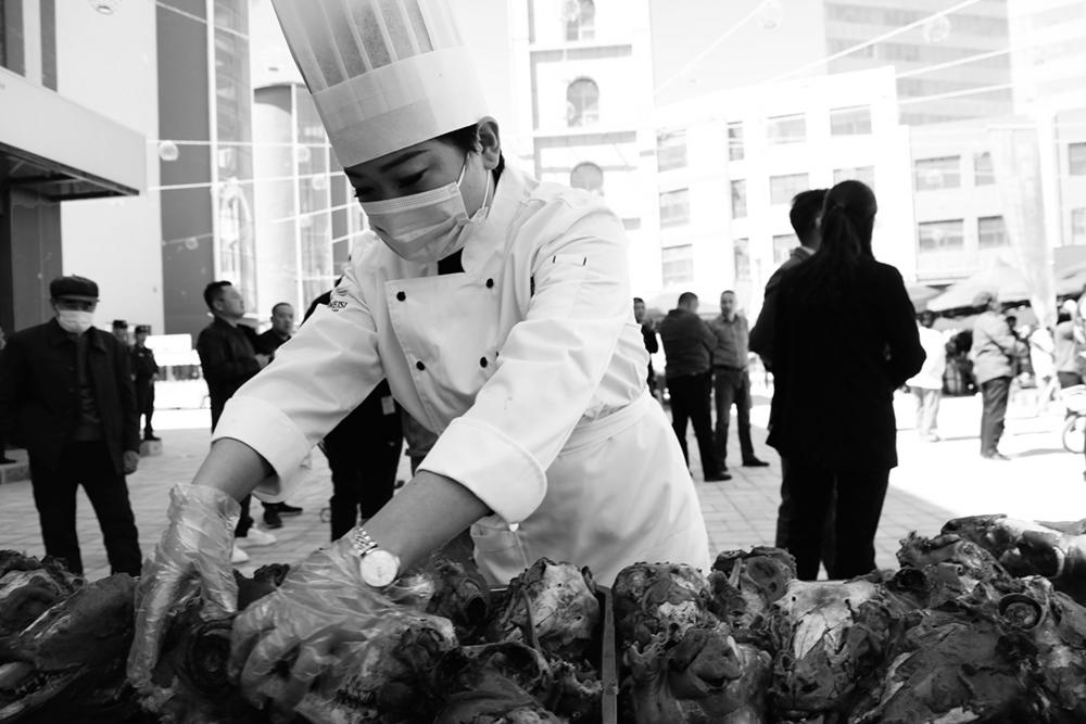 3月30日,以“挑战羊头胃拔头筹”为主题的柴达木盐羊品鉴会暨首届吃羊头挑战赛在德令哈市三工广场激情开赛。