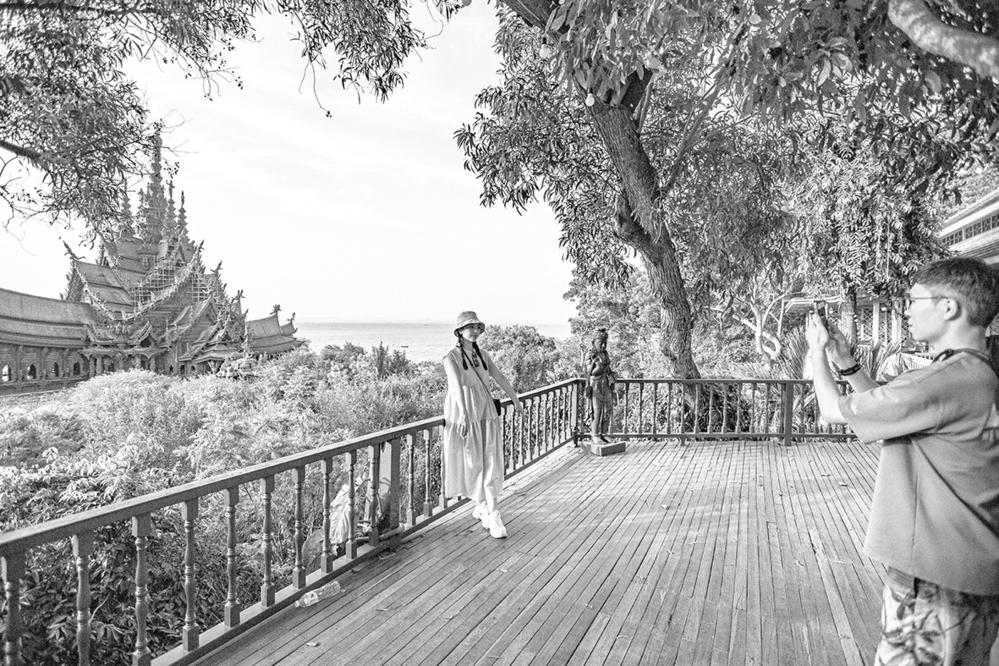 3月29日,游客在泰国芭堤雅真理圣殿拍照。新华社记者 王腾 摄