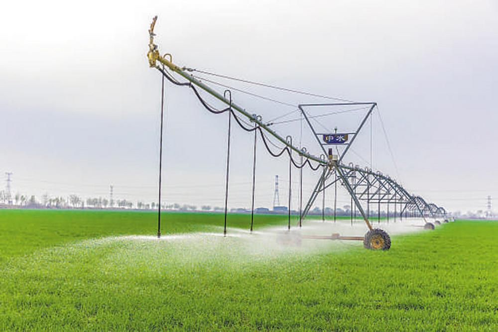随着气温回升,晋南地区的冬小麦开始返青。山西省运城市永济市卿头镇董村农场使用全自动移动式管道喷灌设备给小麦浇第一次“返青水”,助力今年小麦增产增收。杨建峰 摄(影像中国)
