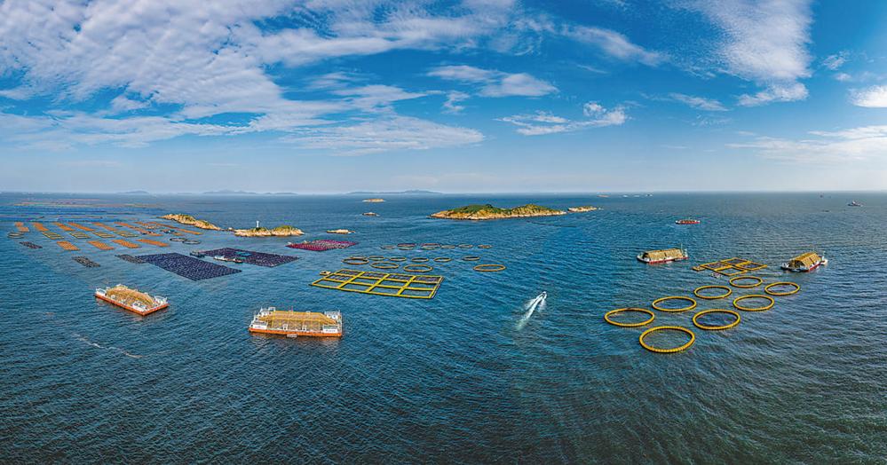 在福建省连江县定海湾,深远海机械化养殖平台有序运转,海洋牧场间船舶往来穿梭,“海上春耕”如火如荼。 刘晓宇 杨柳州 摄影报道