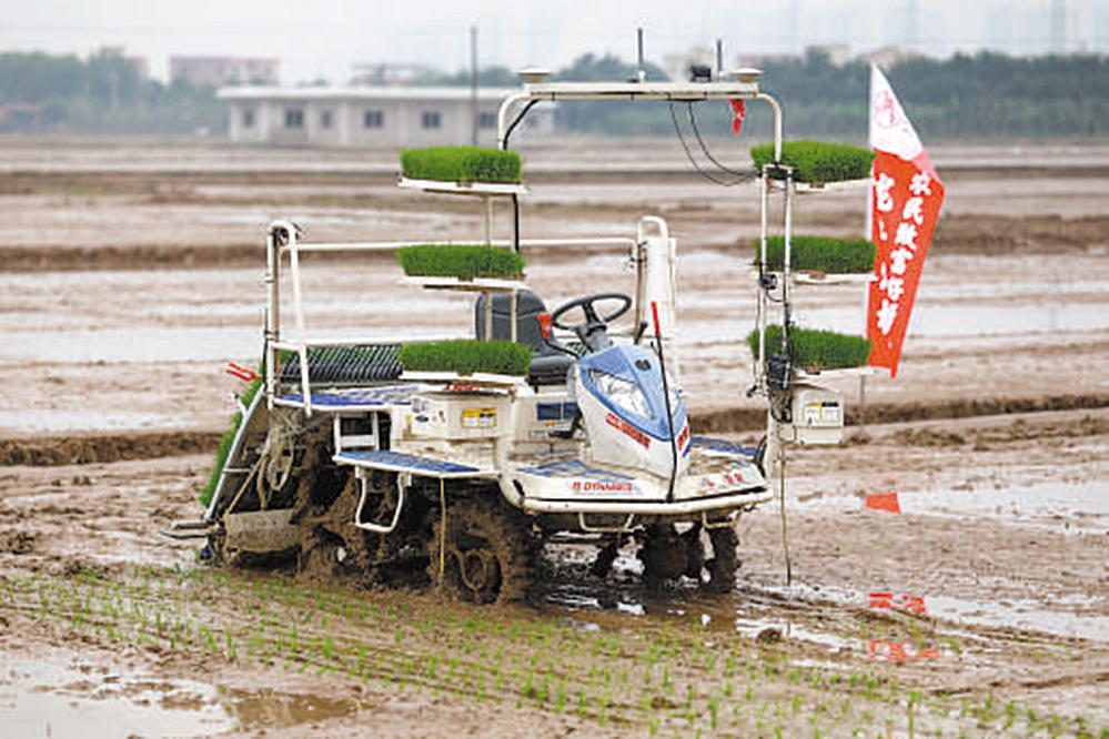 在广东省广州市南沙区东涌镇石基村,当地通过无人播种机等设备进行春耕生产,为保障粮食丰收夯实基础。 刘 伟 摄(影像中国)