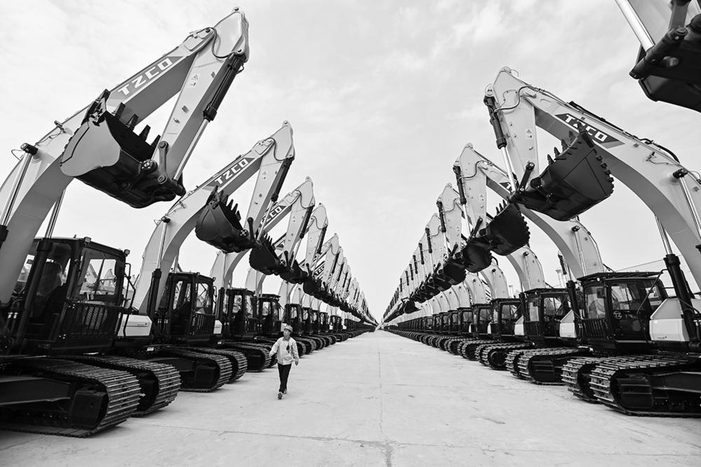 这是停放在太重集团智能高端液压挖掘机产业园区内等候交付的液压挖掘机(4月9日摄)。 近年来,山西省把制造业振兴作为产业转型的主攻方向,确定了高端装备制造、新能源汽车等重点产业链,加快构建现代化产业体系。作为山西省高端装备制造产业链“链主”企业,太原重型机械集团有限公司(简称“太重集团”)通过技术创新、智能化升级等举措,积极推动装备制造业从“制造”向“智造”转变。位于山西转型综合改革示范区的太重集团智能高端液压挖掘机产业园区,自2023年9月投产以来,已具备年产5万台全系列多动力液压挖掘机的能力。目前,该园区生产的液压挖掘机产品已销往数十个共建“一带一路”国家。 新华社记者 杨晨光 摄