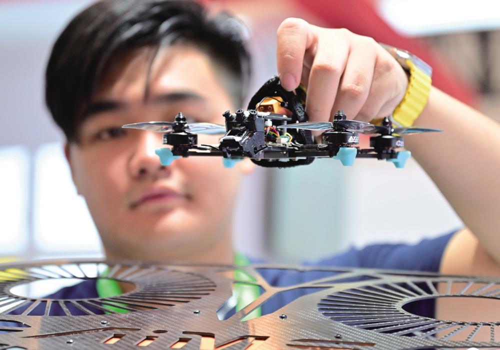 4月9日,在首届晋江科技成果转化对接洽谈会智能装备展位,工作人员在展示无人机研究成果。 当日,以“接洽科技新成果,锻造新质生产力”为主题的首届晋江科技成果转化对接洽谈会在晋江国际会展中心开幕,200多家国内高校、科研平台、投资机构、行业龙头企业携上千项科技成果亮相。展会展示总面积约3万平方米,按产业划区,重点围绕鞋服、纺织、建材、食品、现代信息技术、大健康、智能装备等七大产业领域。 新华社记者 魏培全 摄