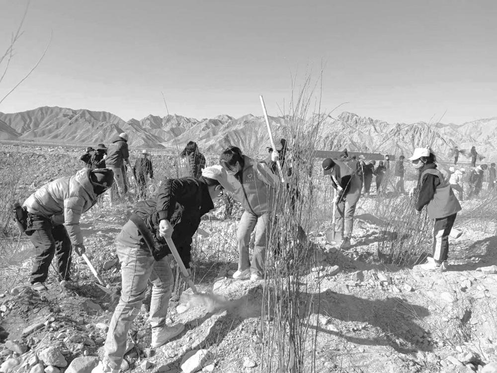 近日,都兰县热水乡联合辖区各站所、各村社积极开展植树造林活动,履“植”尽责,为热水增添一丝绿色,优化热水人居环境,打造更加美丽的宜居乡村。 本报记者 吴婷婷 通讯员 董高洋 摄影报道