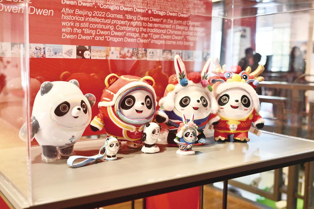 这是4月15日在意大利米兰设计周“中国周”展区拍摄的北京冬奥会吉祥物“冰墩墩”模型。新华社发(米兰中国设计中心供图)