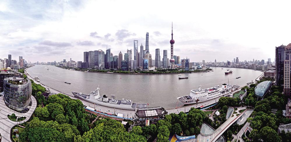 空中俯瞰靠泊在上海港国际客运中心码头的海军淄博舰(左)和海军“和平方舟”号医院船(无人机照片,4月22日摄)。 4月23日,2024年海军成立纪念日舰艇开放活动在上海举行。海军淄博舰和海军“和平方舟”号医院船靠泊上海港国际客运中心码头。预约前来的市民游客不仅能登舰参观,还可在码头举行的系列活动中与海军战士面对面交流,感受人民海军舰船的威武和海军战士的活力。 新华社记者 方喆 摄