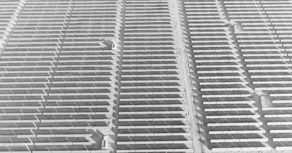 走进茫崖市天茫新能源有限公司风光储能互补示范新能源发电项目现场,一排排光伏发电板整齐地排列着,距离光伏电站五公里外的风机转得正起劲。