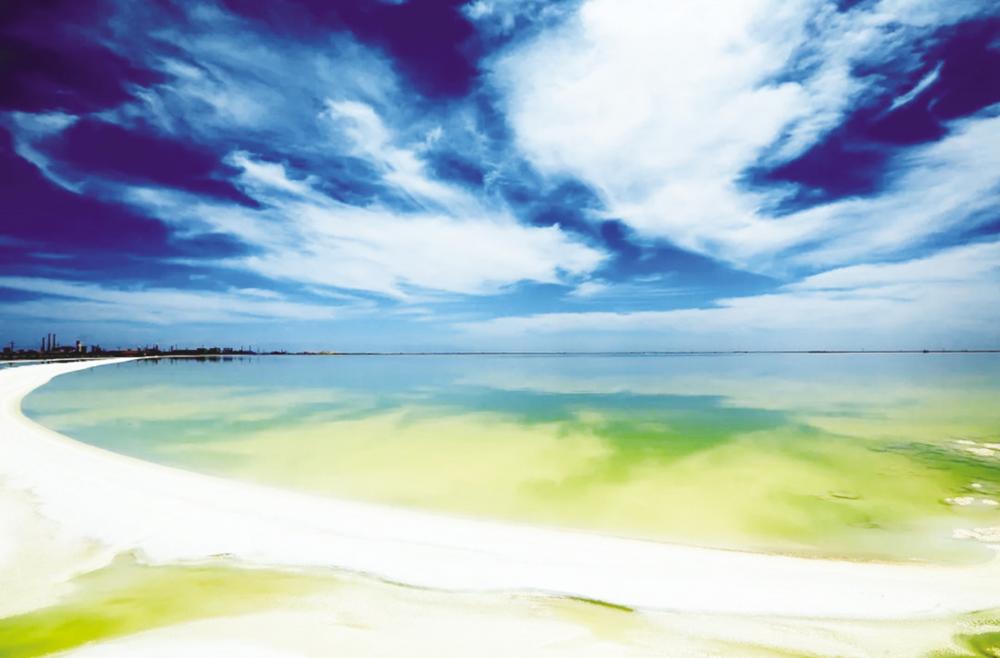 站在察尔汗盐湖边,向远处眺望,盐池里碧波荡漾,青海盐湖工业股份有限公司的采盐船漂浮在盐田中,像联合收割机一样进行采收作业,一滴滴生产所需的卤水经过处理正源源不断地流向各生产车间,化作一粒粒氯化钾、碳酸锂,销运至全国各地。