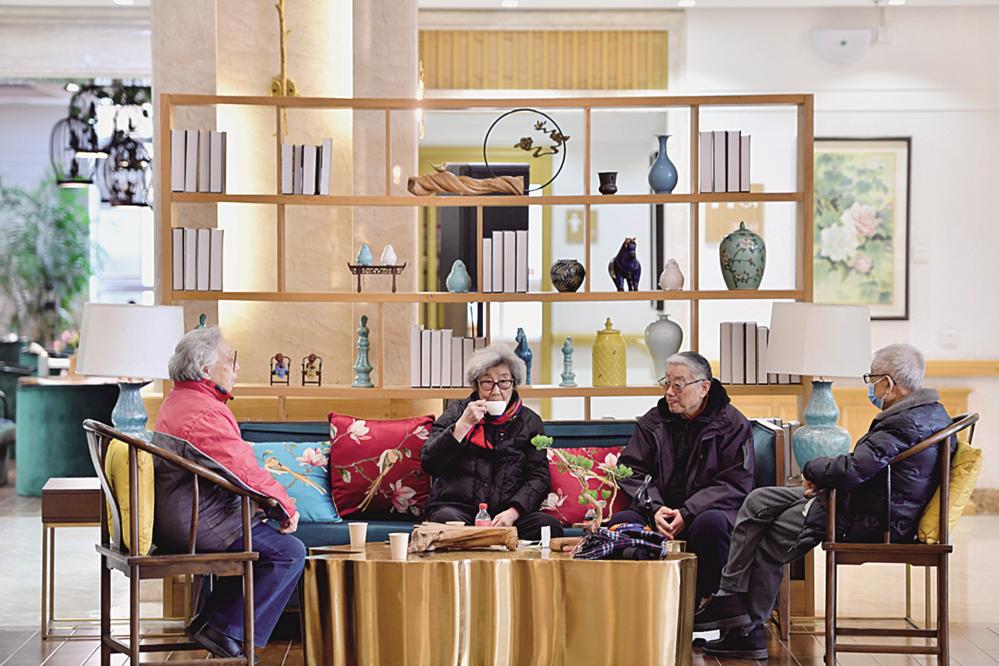 老年人在河北省廊坊市香河县大爱书院养老中心活动室休息(2024年2月28日摄)。新华社记者 王晓 摄
