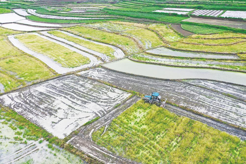 5月4日,在湖南省湘西土家族苗族自治州龙山县石羔街道干比社区,农民在田间耕作,准备插秧(无人机照片)。 立夏节气临近,各地农民抢抓农时开展各项农事活动,田间、地头一片忙碌景象。新华社发(曾祥辉 摄)