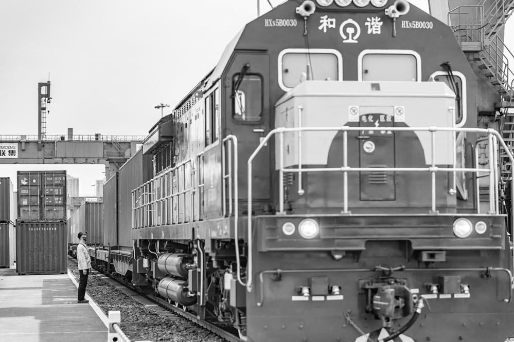 5月5日,在重庆国际物流枢纽园区,一列装载机械设备、汽车和笔记本电脑的中欧班列在重庆团结村中心站等待发车。 随着货物运输量日益增长,位于重庆市沙坪坝区的重庆国际物流枢纽园区龙门吊起降不停、转运卡车来往穿梭……一片繁忙景象。 重庆国际物流枢纽园区包含团结村中心站、西部陆海新通道重庆无水港、重庆铁路口岸等片区,是重庆中欧班列、西部陆海新通道班列等物流通道班列的主要到发点。 新华社记者 黄伟 摄