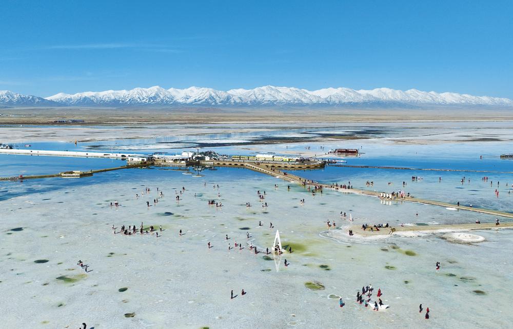 茶卡盐湖游人如织。通讯员 张锦帆 摄
