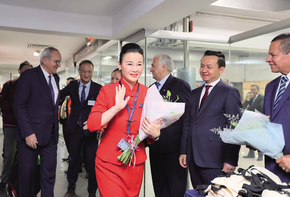 5月11日,深圳—墨西哥城直飞首航航班机组人员抵达墨西哥首都墨西哥城贝尼托·华雷斯国际机场。 5月11日晚,首趟由中国南方航空集团有限公司执飞的深圳—墨西哥城直飞航班降落在墨首都墨西哥城贝尼托·华雷斯国际机场。深圳—墨西哥城直飞航线跨越超14000公里,是目前中国民航距离最长的直飞国际客运航线。 新华社记者 李梦馨 摄