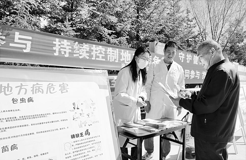 近日,海西州卫生健康委员会组织州市两级51家单位,在德令哈市中心广场开展了2024年春季地方病防治集中宣传活动。 此次宣传活动的主题是“共同参与 持续控制地方病危害”,活动的开展进一步提升了群众对预防接种工作的参与度,营造了全社会重视、关心和支持控制地方病危害工作的良好氛围。 本报记者 查宝音 摄影报道