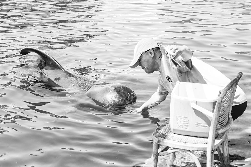 5月15日,海南三亚海昌生物保育中心的工作人员给短肢领航鲸“海棠”喂食。 近日,在海南三亚搁浅被救助的短肢领航鲸“海棠”恢复良好。经过专家论证评估,“海棠”已经具备野外放归条件,预计本月内根据海况、天气等条件择期被放归大海。新华社记者 张丽芸 摄