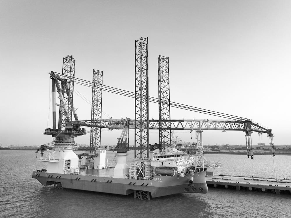5月18日拍摄的“大桥海风”号(无人机照片)。 当日,由中铁大桥局和招商工业共同研制的最新一代2000吨自升式海上风电安装平台“大桥海风”号在江苏南通交付。“大桥海风”船长138米,船宽53米,拥有4根131米高的桩腿,多项性能指标达到国际领先水平。 新华社发(许丛军 摄)