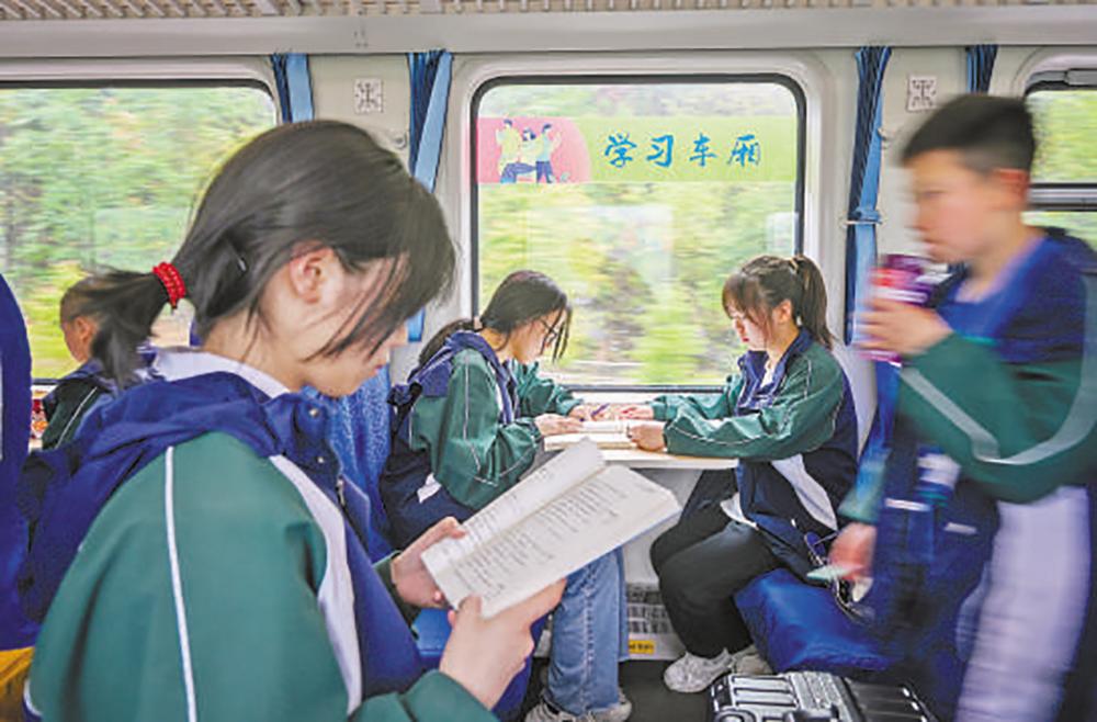 学习 车厢 从重庆市秀山土家族苗族自治县开往重庆市的5610次慢火车上开设了学习车厢,服务学生出行。 钟洁 摄(人民视觉)