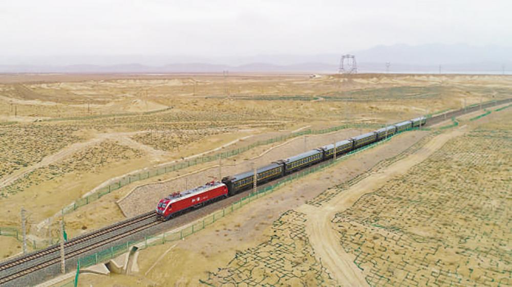 跨高原 从青海省西宁市开往大柴旦马海的7583次慢火车行驶在高原上。 韦鹏程 摄(人民视觉)