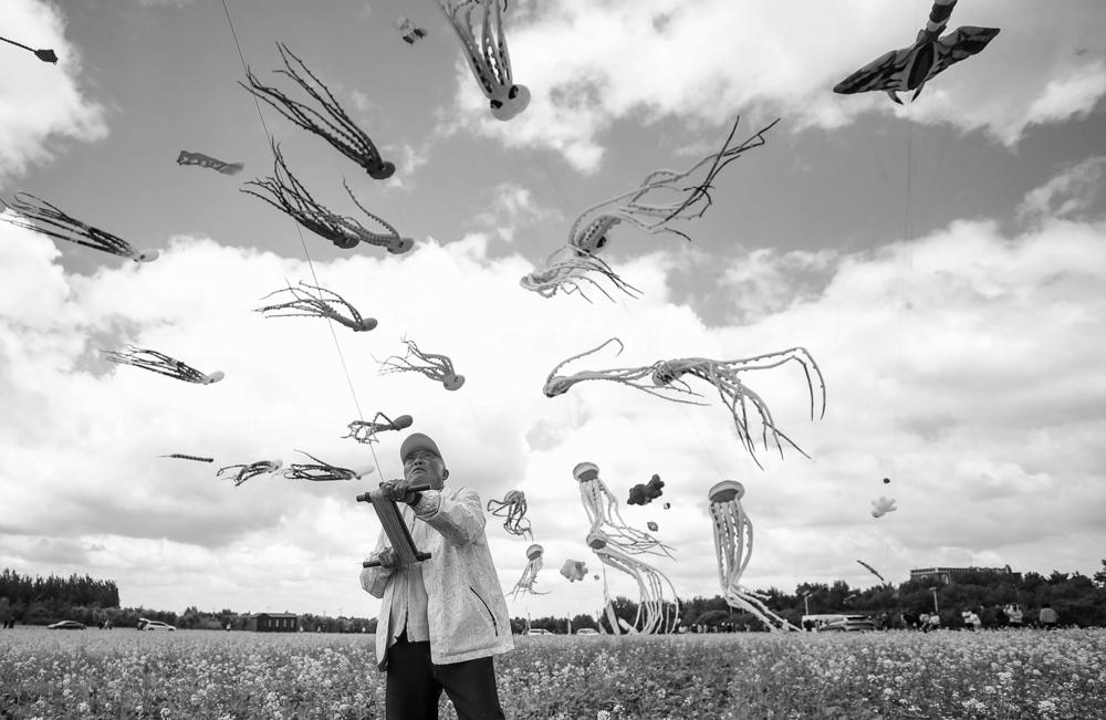 5月31日,一名风筝爱好者在2024中国(康平)“相约卧龙湖 放飞中国梦”第四届风筝节活动现场放风筝。 当日,2024中国(康平)“相约卧龙湖 放飞中国梦”第四届风筝节在辽宁省康平县举办,吸引众多风筝爱好者参与。新华社记者 龙雷 摄