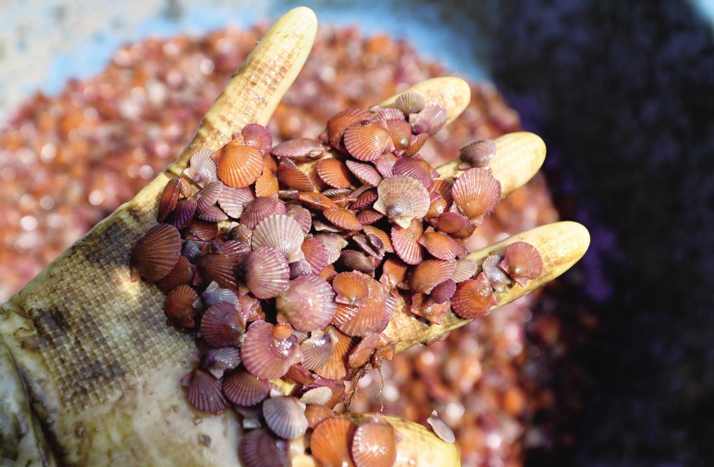 6月13日,在昌黎县海域,渔民展示扇贝苗。 近日,在河北省秦皇岛市昌黎县海域,渔民们驾驶养殖船在养殖区来往穿梭,进行扇贝分苗入海养殖作业,一派“耕海”繁忙景象。近年来,昌黎县依托得天独厚的海洋自然资源,大力发展扇贝养殖产业,通过合理调整养殖区域、规划养殖密度等举措,促进当地海洋养殖业健康发展,助力渔民增收致富。目前,该县扇贝养殖面积达16万亩。新华社发(张晓峰 摄)