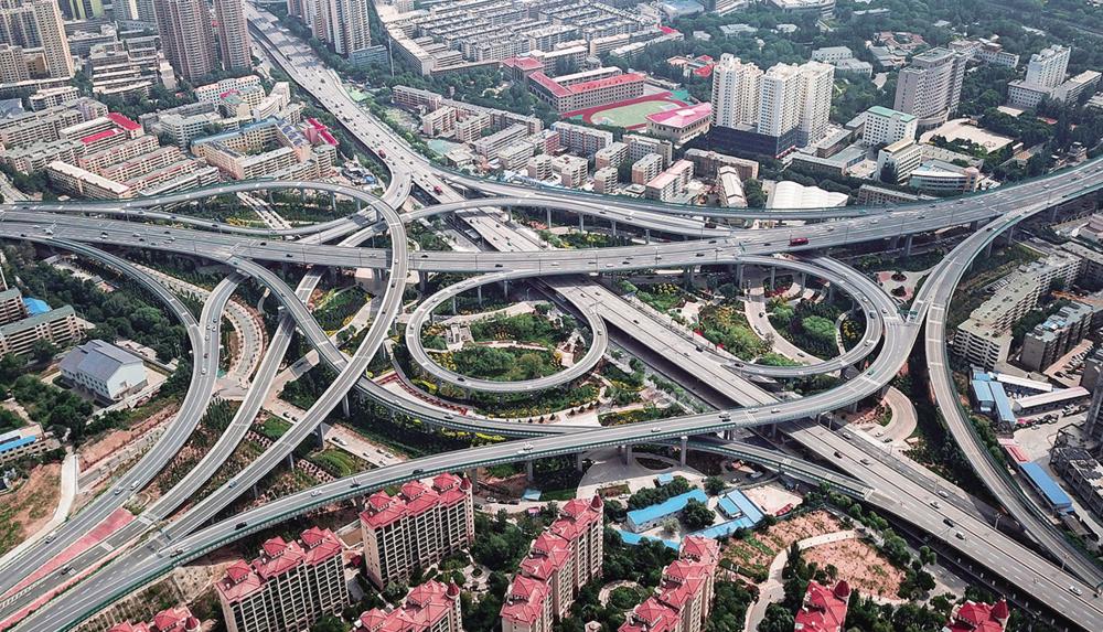 俯瞰西宁市园树立交桥,抽象的画面仿佛将空间与时间交织在了一起。这座立交桥衔接城市东西南北,成为夏都的地标性建筑之一。