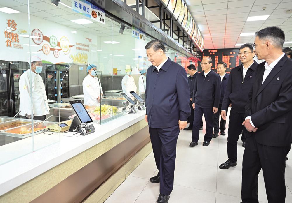6月18日至19日,中共中央总书记、国家主席、中央军委主席习近平在青海考察。这是18日下午,习近平在果洛西宁民族中学食堂察看学生就餐条件。新华社记者 谢环驰 摄