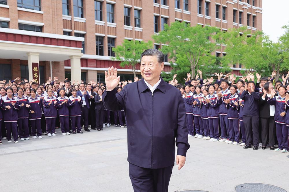 6月18日至19日,中共中央总书记、国家主席、中央军委主席习近平在青海考察。这是18日下午,习近平在果洛西宁民族中学考察时,向师生们挥手致意。新华社记者 鞠鹏 摄
