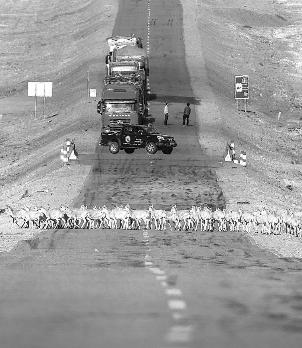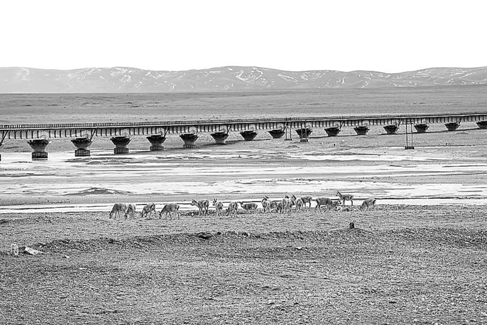 蜿蜒在高原深处的青藏公路、青藏铁路,在助力高原经济社会高质量发展的同时,留足藏羚羊迁徙通道,保护生物多样性。