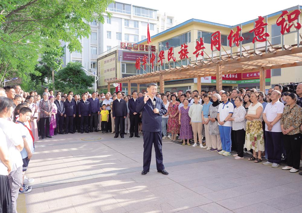 6月19日至20日,中共中央总书记、国家主席、中央军委主席习近平在宁夏考察。这是19日下午,习近平在银川市金凤区长城花园社区考察时,同社区居民亲切交流。新华社记者 谢环驰 摄