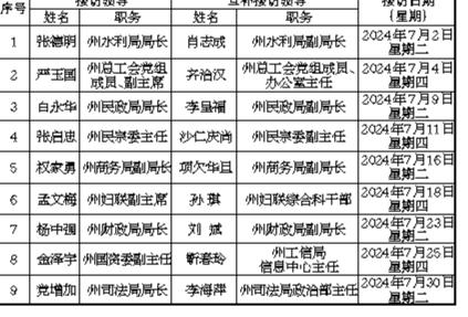 为进一步畅通信访渠道,根据《信访工作条例》和《海西州各级领导干部定期接待群众来访工作暂行办法》,海西州人民来访接待中心开展领导干部接访日活动,公开接待群众来访。现将7月接访领导安排公示如下: