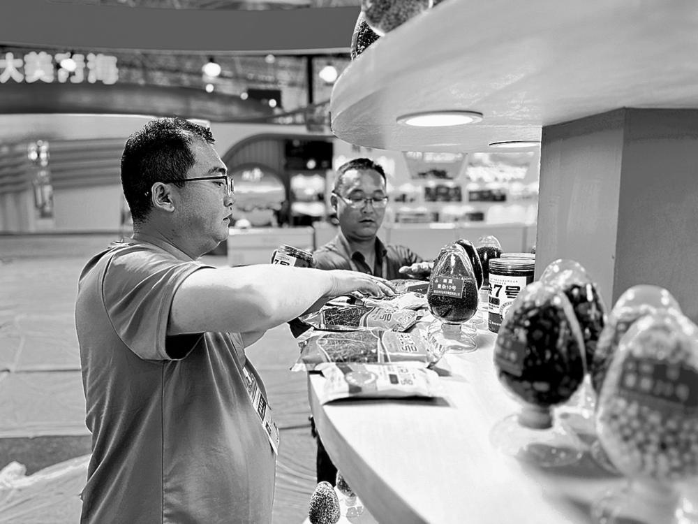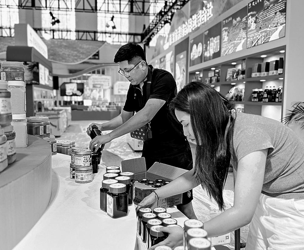 走过前两个展馆,最后一站是C馆商品贸易馆。在这里,最吸引记者的是展馆深处的8个直播间,这是本届青洽会特色活动——直播“嗨购”的展播点。8个直播间分别为我省8个市州带货,挑选出当地最具地方特色的优质产品推广,助力各市州特色产品拓展市场,让地道好物在青洽会上进一步提升美誉度和影响力。