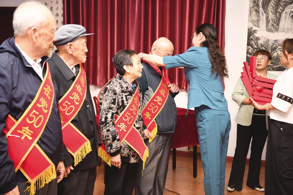 深入挖掘“银发人才”资源,邀请老教师、“光荣在党50年”纪念章获得者进社区、进学校,宣讲党的二十大精神,教育引导社区居民、教师学生坚定理想信念,传承红色血脉。