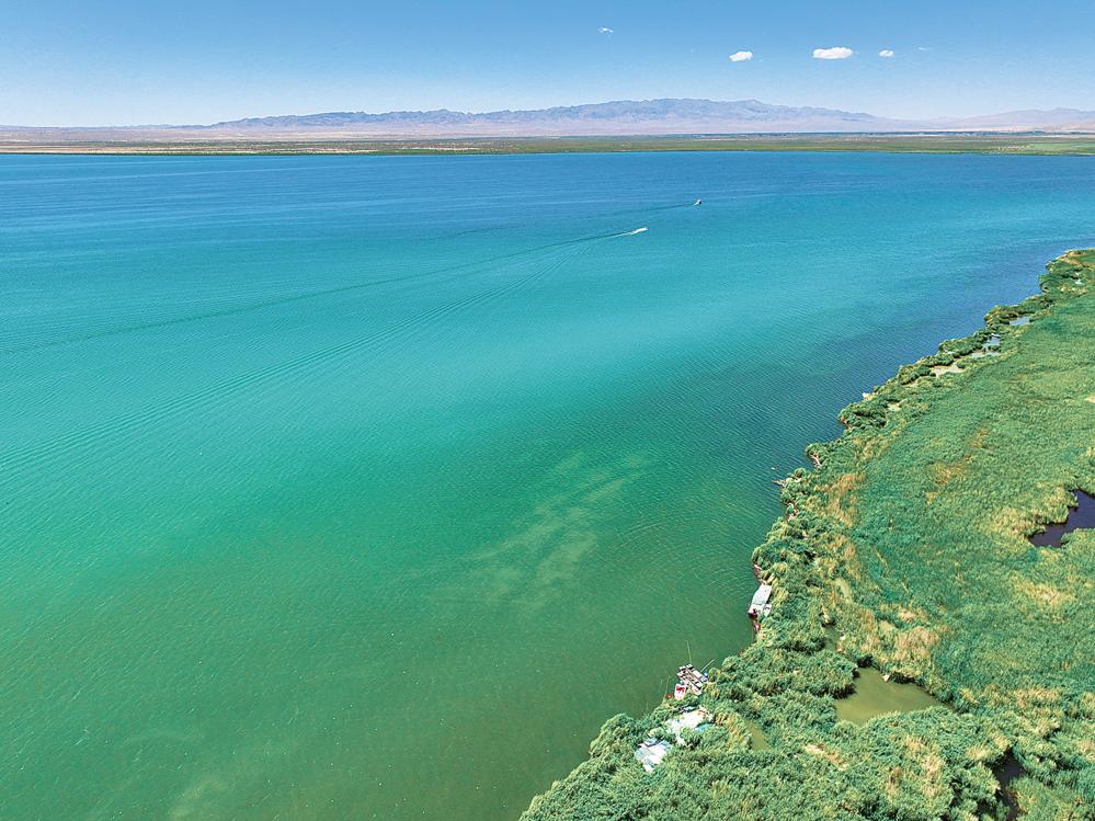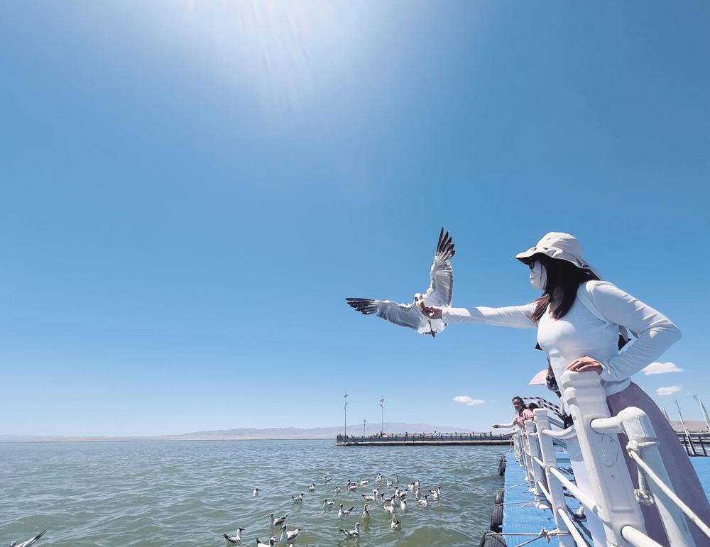 湖水清澈透明,湖底水草如画,湖畔芦苇高密。这里是美丽的可鲁克湖,位于德令哈市。7月28日,在可鲁克湖旅游景区内,记者看到游客们或乘坐观光船观赏湖上美丽风光,或行走在湖畔,与一群红嘴鸥进行亲密互动。随着生态保护工作的不断加强,可鲁克湖的鸟类种类和数量也在逐年增加。这些鸟儿在湖面上翱翔、觅食、嬉戏,构成了一幅生动的生态画卷,吸引着众多游客前来观光旅游,感受大自然的神奇魅力。青海日报记者 李娜 魏雅琪 摄影报道