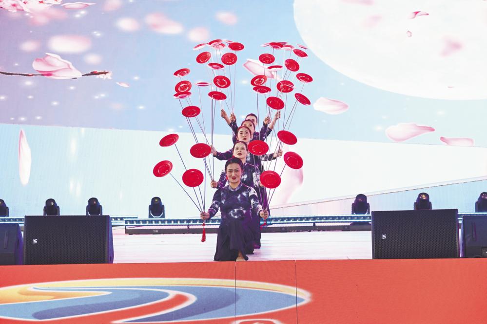 首先上场的是《漫天飞舞》转碟表演,演员们用一根长约一米、厚如铅笔的杆子在盘子底部摇晃旋转,让盘子看起来像立在风中的荷叶,《奇妙世界》带来刺激精彩的“人体两分”魔术表演,在观众代表确认铁皮箱子没问题的情况下,男魔术师对装有女演员的铁皮箱子插入数把剑并分成了两半,当在场观众还在惊恐时,女演员面带微笑地从铁皮箱子里走了出来,为现场观众带来了神奇的视觉享受;《太极·坛韵》以水墨画作为演出背景,将太极文化与杂技表演相融合,“小坛砸脖三节后空翻”“双坛后空翻上肩”“双人过缸口”“移形换位”等一系列高难度技巧动作,形成了震撼的视觉冲击力,给观众带来了一场“惊、险、奇、美”的精彩表演,让观众惊叹不已、掌声连连。还有《野蜂飞舞——捷克棒》《炫彩世界——晃圈》《担当——群体技巧》等节目轮番上演,将演出逐渐推向高潮。