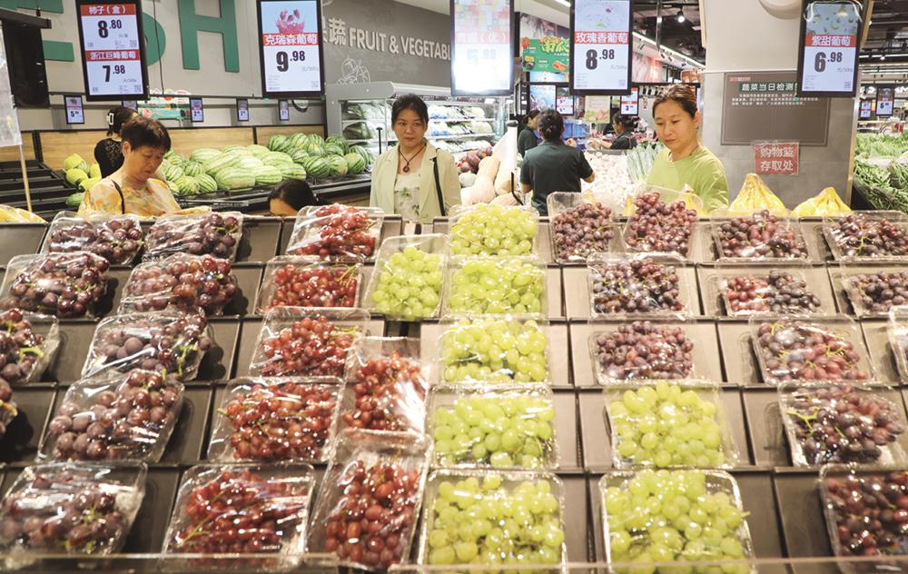 8月9日,消费者在山东省东营市东营区文汇街道一家超市选购商品。