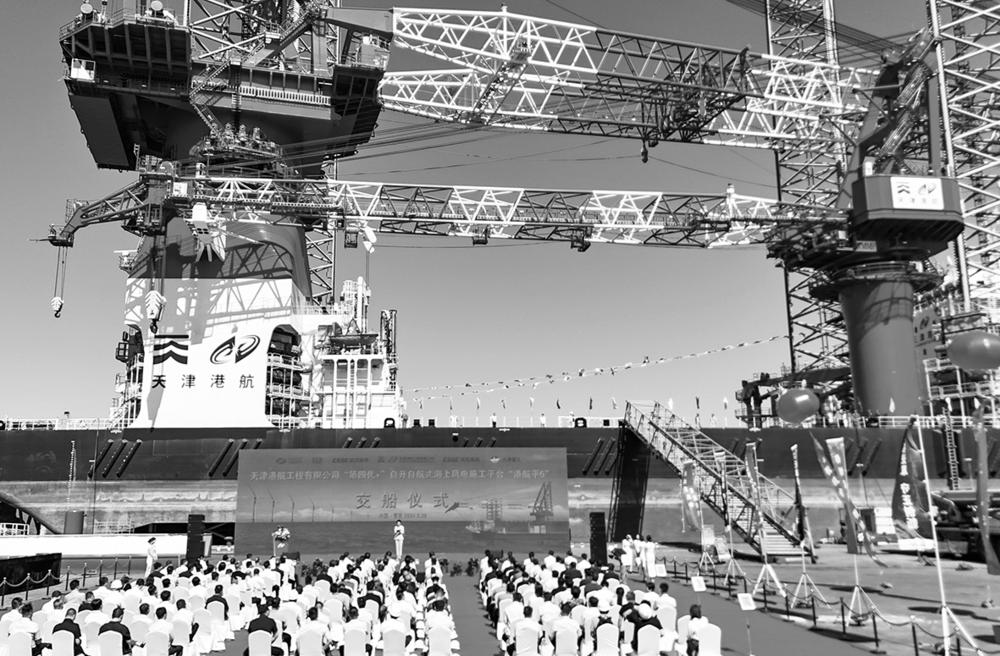 据了解,“港航平5”平台船长135米,宽50米,最大作业水深70米,最大起重能力1800吨。 新华社发(张进刚 摄)