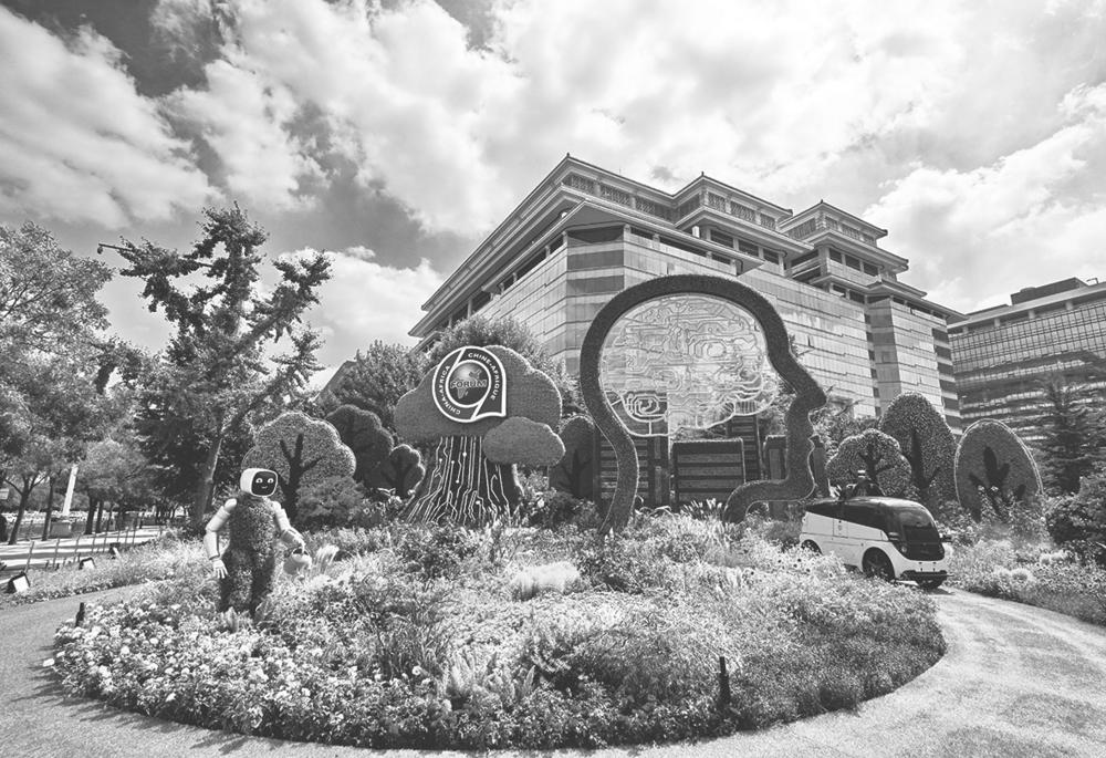 8月29日在北京西单路口拍摄的“美好蓝图”花坛。 2024年中非合作论坛峰会将于9月4日至6日在北京举行。 新华社记者 李欣 摄